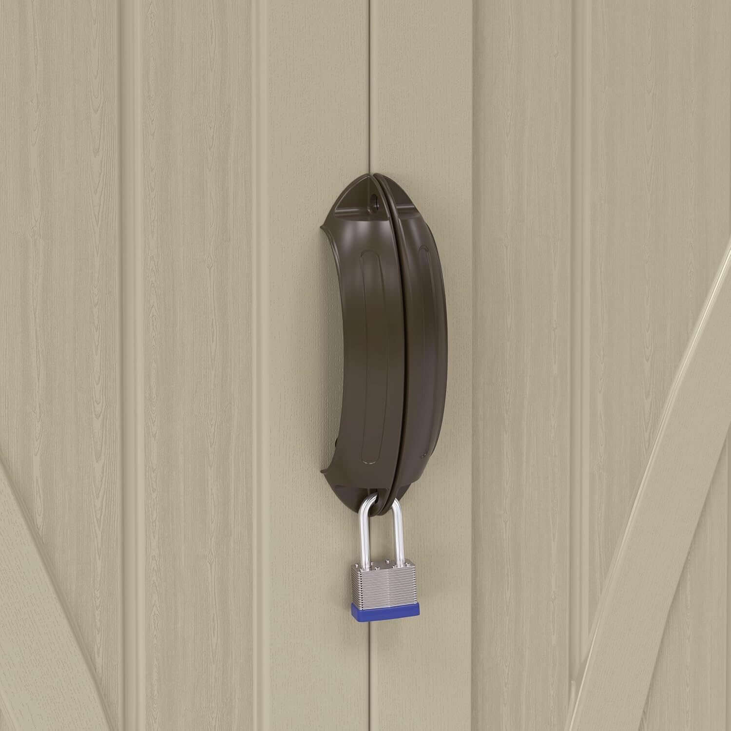 Features padlock-ready metal hasps and a lower latch for added security, allowing you to safely store valuable items and keep them protected from the elements.