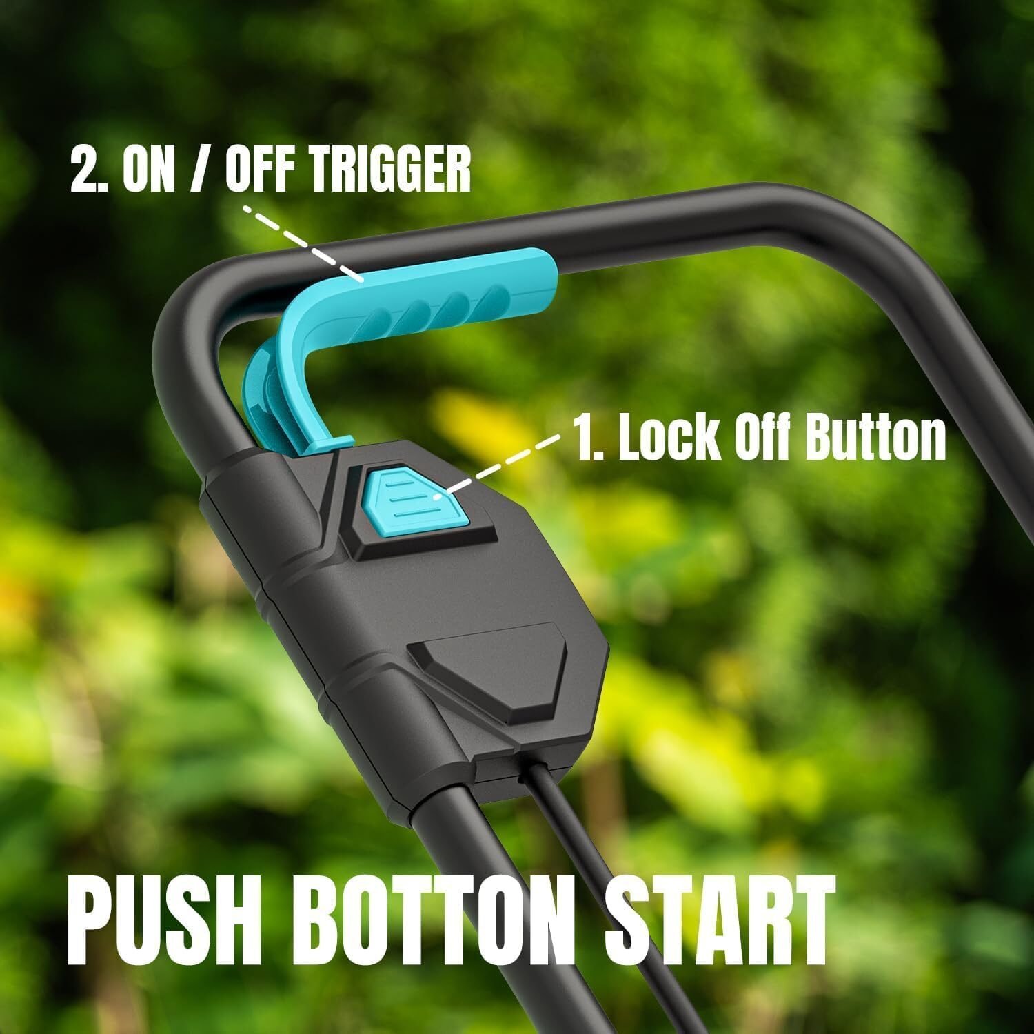 Weighing just 24 lbs, this mower is easy to push, pull, and carry. The foldable handle allows for compact storage and quick setup when needed.